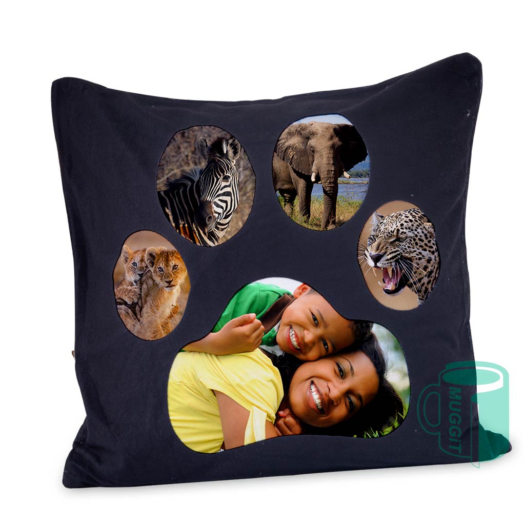 - 40 x 40 cm cushion with Paw Print Plush cover. (PANEL SIZES MAY VARY).